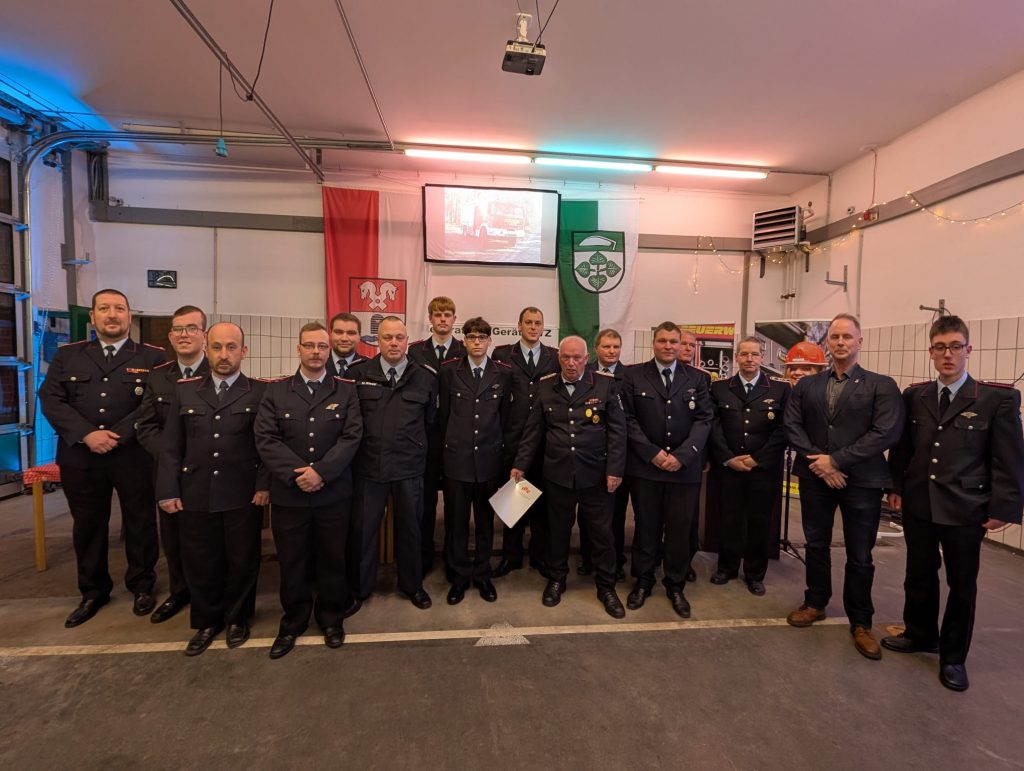 Traditionell fand auch in diesem Jahr am letzten Samstag im Januar den 31.01.2026 die Jahreshauptversammlung 2025 der Feuerwehr Dorfmark statt. Vor den Mitgliedern der Feuerwehr sowie den geladenen Ehrengästen aus Feuerwehr und Politik eröffnete Ortsbrandmeister Stefan Weißenborn mit einem kurzen Überblick über das vergangene Jahr die Sitzung. Das Jahr 2025 war für die gesamte Feuerwehr ein ereignisreiches Jahr. Die Feuerwehr Dorfmark musste mehrerer Schicksalsschläge erleiden und zusammen mit allen Kameraden und Kameradinnen diese verarbeiten. Im Rahmen der Blaulichtmeile, die in kürzester Zeit organisiert und durchgeführt wurde, hat man ganz klar gesehen was Kameradschaft und Zusammenhalt bedeutet. Hier für möchten wir uns bei allen mitwirkenden nochmals bedanken. Insgesamt wurde die Feuerwehr Dorfmark zu 49 Einsätzen alarmiert, wovon sich 25 Einsätze auf Technische Hilfeleistungen wie Türöffnungen, Ausleuchten Landeplatz Rettungshubschrauber, Beseitigung von umgestürzten Bäumen sowie Verkehrsunfälle bezogen haben. Sowie 24 Brandeinsätze, wo es um kleine Flächenbrände ging, LKW-Brände, aber auch mehrere Gebäudebrände waren dabei. Aktuell besteht die Feuerwehr Dorfmark aus 88 Mitgliedern, aufgeteilt in 53 Personen in der Einsatzabteilung, 18 Kinder und Jugendliche in der Jugendfeuerwehr sowie 17 Personen in der Altersabteilung. Von den Ehrenamtlichen wurden insgesamt knapp 5400 Stunden Arbeitseinsatz geleistet, welche neben Einsätzen auch die Ausbildung von Kameradinnen und Kameraden, Lehrgänge und administrative Aufgaben beinhalten. Hinzu kommen sicherlich noch weitere nicht gezählte und erfasste Stunden. Im anschließenden Bericht des Jugendfeuerwehrwartes Nico Bode wurde von zahlreichen und spannenden Aktivitäten der Jugendlichen im letzten Jahr berichtet. So haben die Jugendlichen an verschiedenen Feuerwehraktionen teilgenommen. Der Bürgermeister Rolf Schneider konnte aus terminlichen Gründen leider nicht persönlich anwesend sein, wollte sich dennoch mit einer Videobotschaft für die geleistete Arbeit bedanken und hat insbesondere den Zusammenhalt in den letzten Monaten, aufgrund der schweren Situation besonders hervorgehoben. Vertretungsweise für Herrn Schneider ehrte Michael Kurrat von der Stadt Bad Fallingbostel Benjamin Skorina-Zillmann und Christopher Meier mit dem niedersächsischen Ehrenzeichen für 25 Jahre sowie Markus Riedel und Markus Stöckmann für 40 Jahre Mitgliedschaft in der Freiwilligen Feuerwehr. Für langjährige Mitgliedschaft in der Feuerwehr, durfte Brandschutzabschnittsleiter Gerold Bergmann die Ehrennadel für 60 Jahre an den Ehrenortsbrandmeister Helmut Zahn verleihen. Im weiteren Verlauf der Versammlung freute sich Ortsbrandmeister Weißenborn Henning Ahlden, Maximilian Beckmann und Luis Kölm in der Einsatzabteilung aufnehmen zu dürfen. Des Weiteren ernannte er Bent Schoch zum Feuerwehrmann, Justin Krause, Luca Bartel und David Pankratz zum Oberfeuerwehrmann.